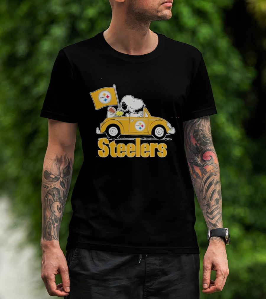 Pittsburgh Steelers Snoopy Driving Car With Flag T-Shirt