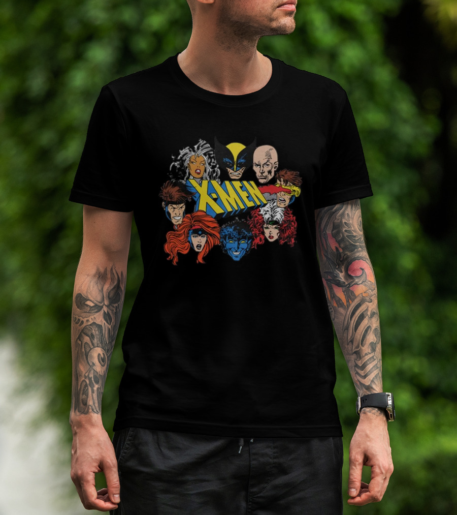 The X-Men Marvel Comics Wolverine Storm Charles Xavier Cyclops Nightcrawler Rogue Jean Grey Gambit T-shirt is designed for everyday wear and a consistent fit. Fabric is pre-shrunk ring-spun cotton with durable stitching. See the size chart below for exact measurements.