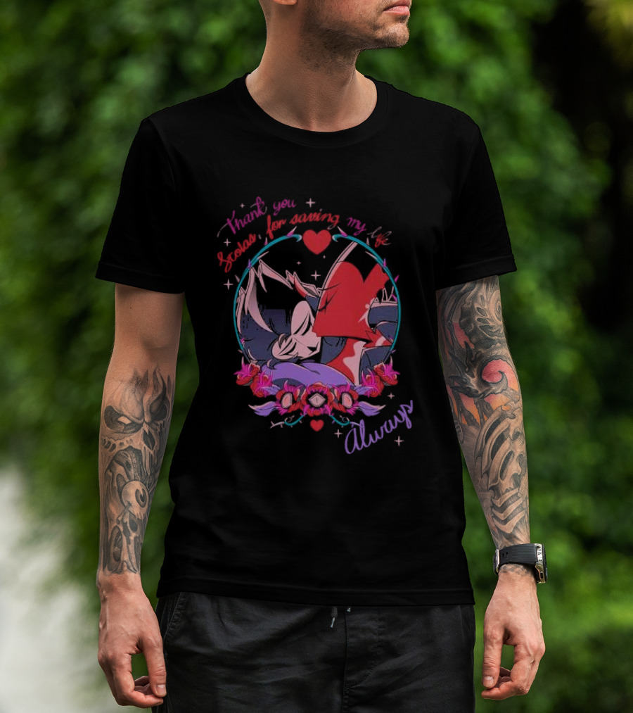 Thank You Scolas For Saving My Life Always Heart And Roses Motif T-Shirt