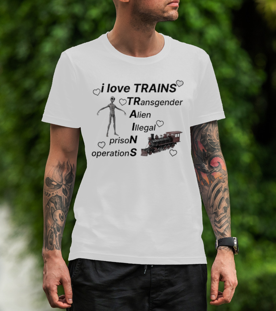 I Love Trains Transgender Alien Illegal Prison Operations Hearts T-Shirt