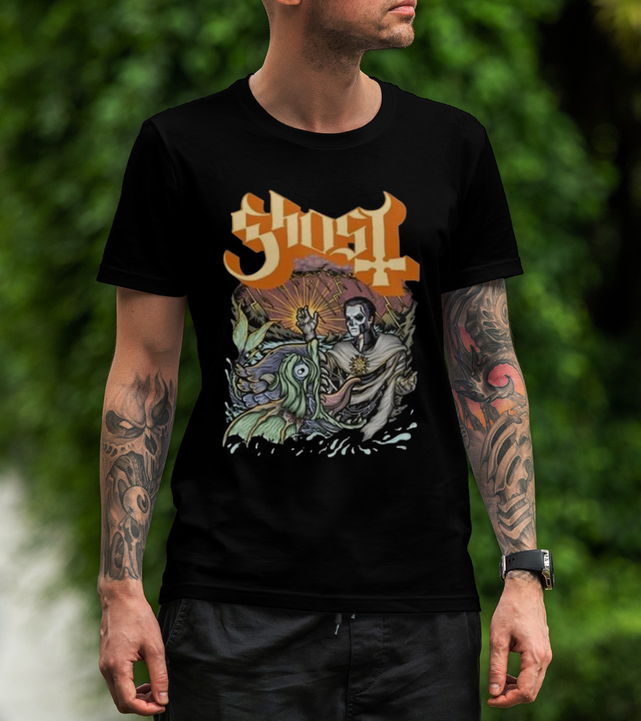 The Ghost Papa and The Whale Legendary Encounter with Rising Sun Background T-shirt is designed for everyday wear and a consistent fit. Fabric is pre-shrunk ring-spun cotton with durable stitching. See the size chart below for exact measurements.