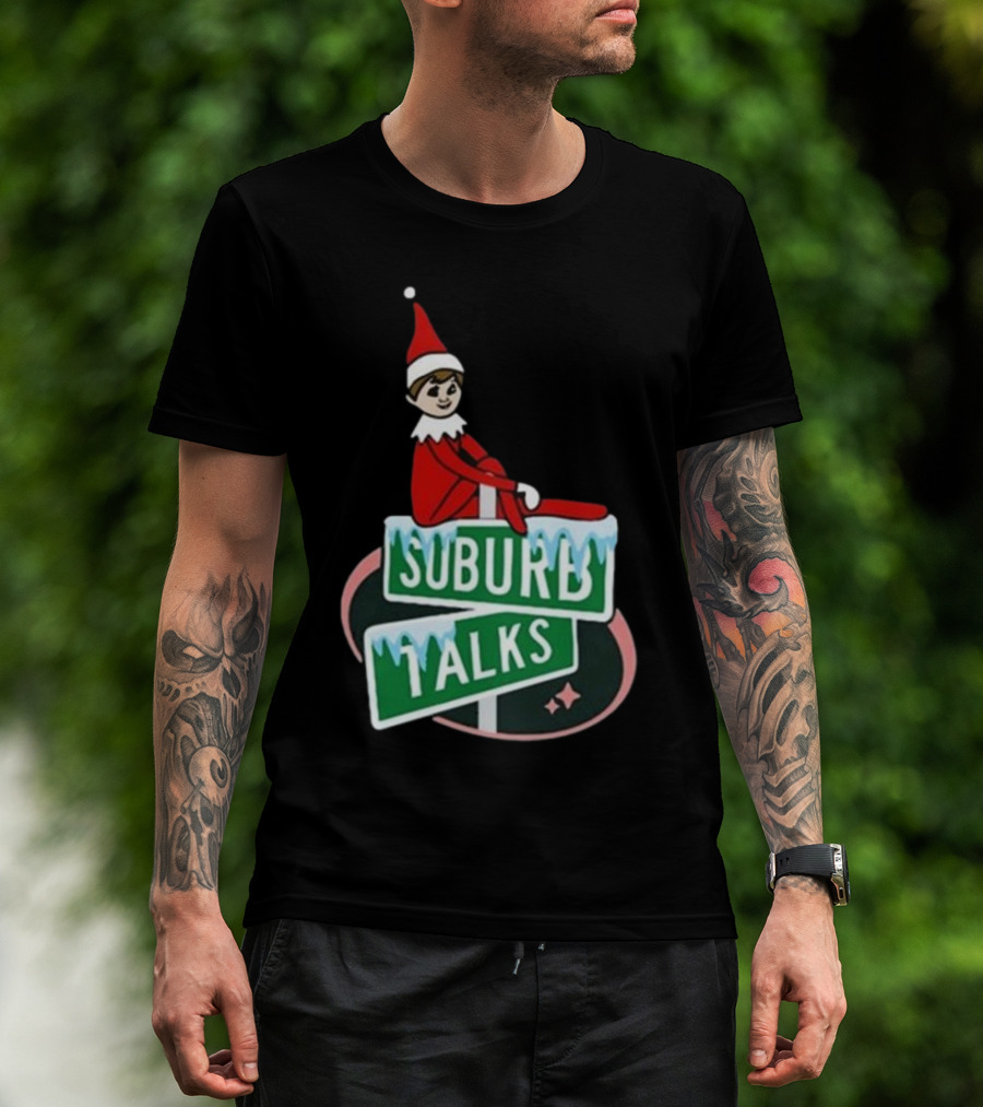Suburb Talks Elf On The Shelf Street Sign Christmas T-Shirt