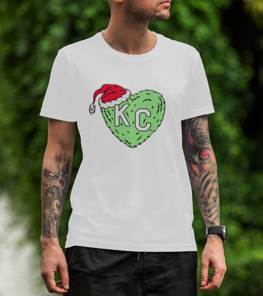 Grinch KC Heart Christmas Santa Hat T-Shirt