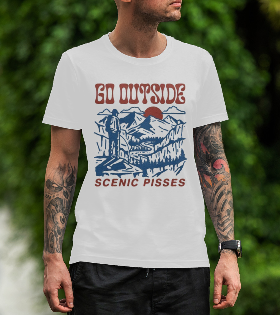 GO OUTSIDE SCENIC PISSES Mountain Hiking Adventure T-Shirt
