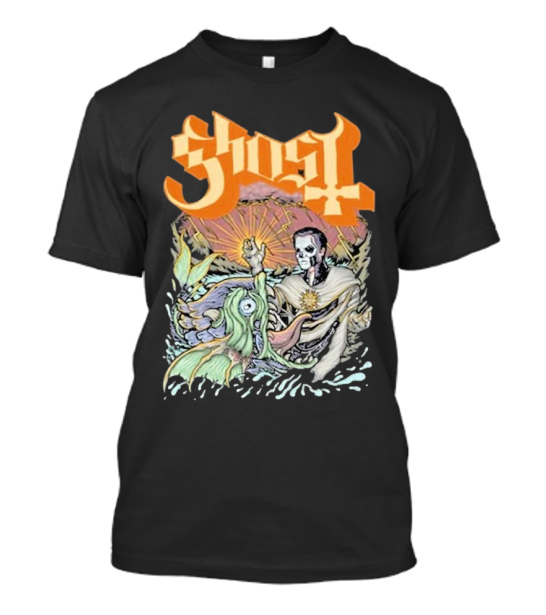 The Ghost Papa Emeritus and the Whale with Oceanic Scene T-shirt is designed for everyday wear and a consistent fit. Fabric is pre-shrunk ring-spun cotton with durable stitching. See the size chart below for exact measurements.