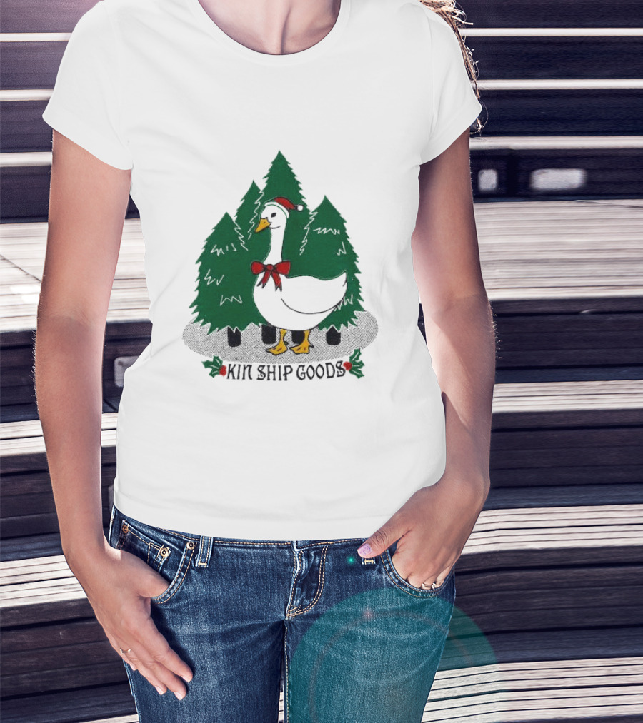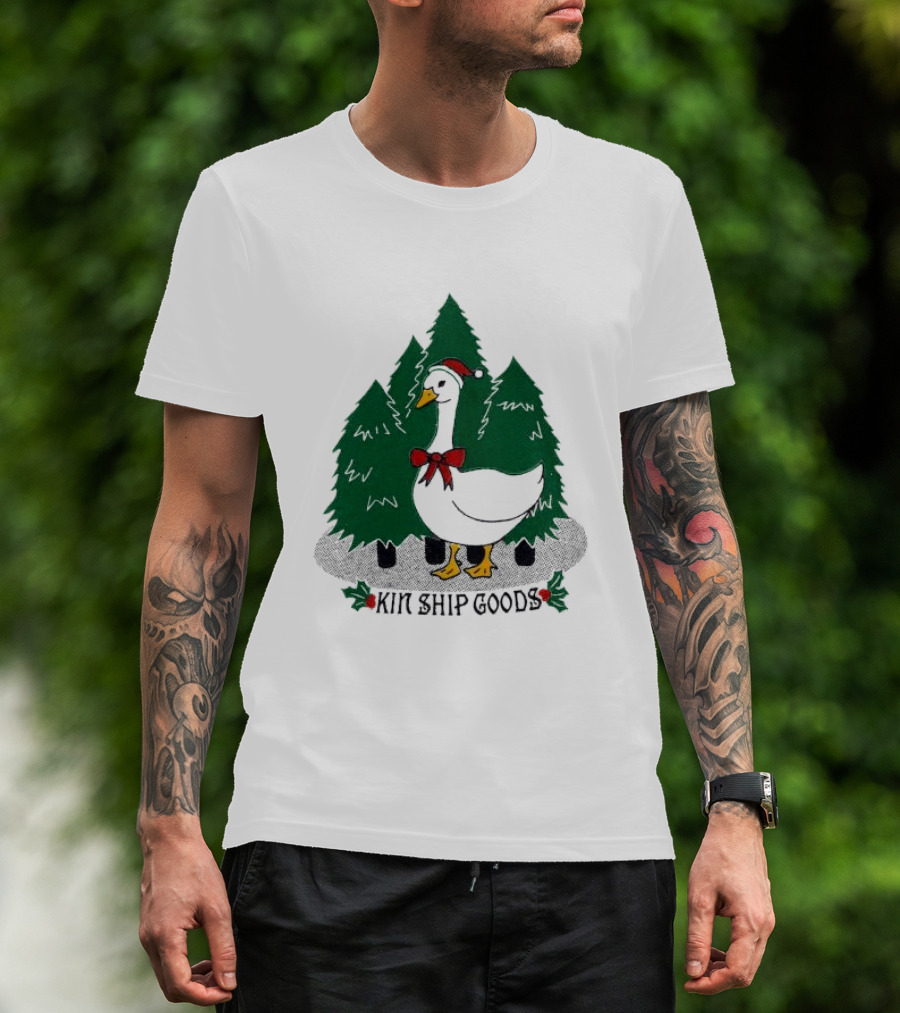 The Kin Ship Goods Santa Claus Duck Christmas Trees Merry Christmas T-shirt is designed for everyday wear and a consistent fit. Fabric is pre-shrunk ring-spun cotton with durable stitching. See the size chart below for exact measurements.