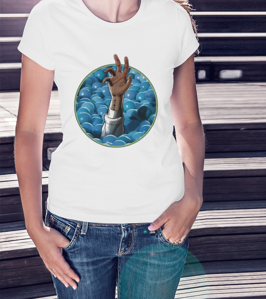Hand Reaching Out Of Blue Ballpit Sphere T-Shirt