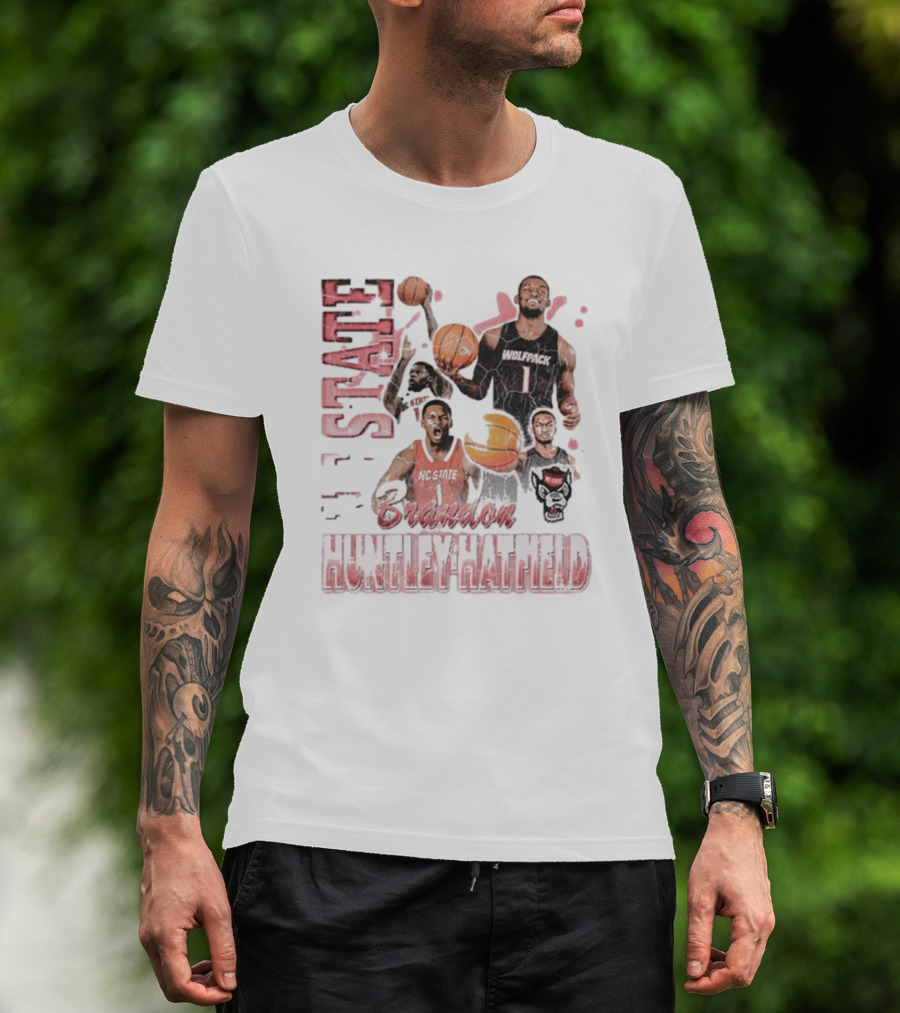 Brandon Huntley-Hatfield NC State Wolfpack 90s Retro Basketball Collage T-Shirt
