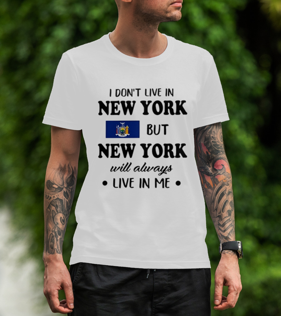 I Don't Live In New York But New York Flag Symbol Will Always Live In Me T-Shirt