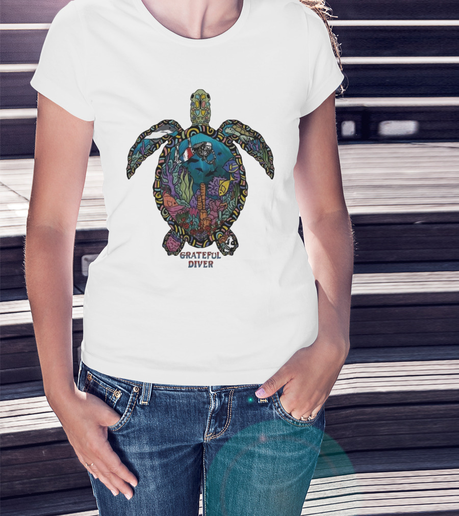 Grateful Diver Psychedelic Turtle Underwater Exploration UV T-Shirt