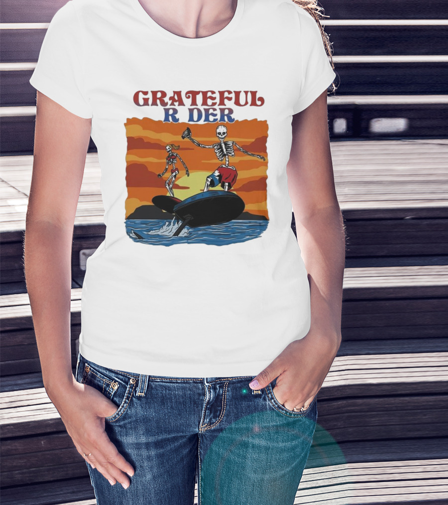 Grateful Rider Skeletons Surfing Sunset E-foil Adventure T-Shirt