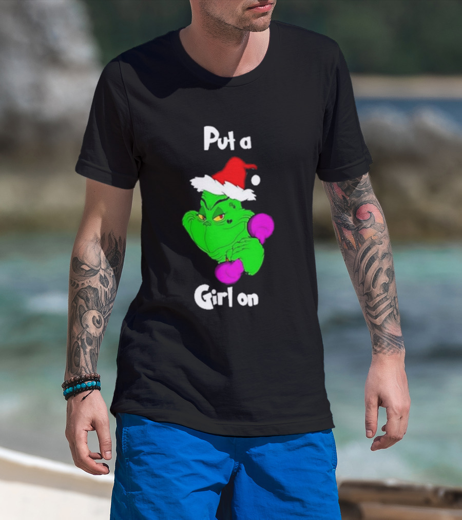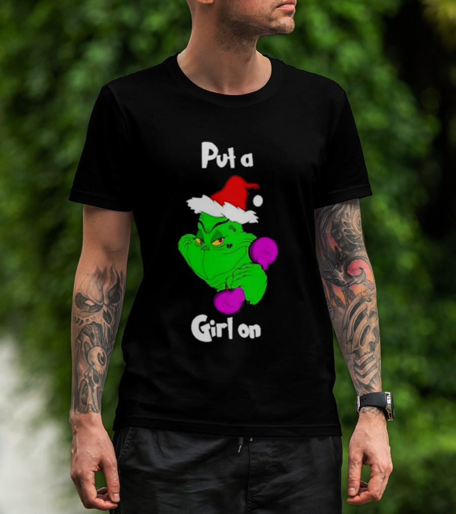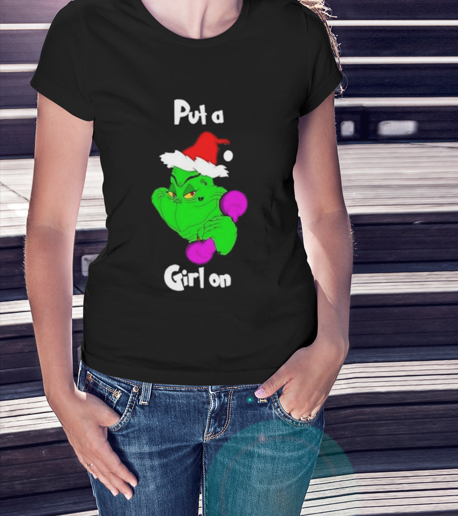 Grinch Boxing Santa Hat Put A Girl On Christmas T-Shirt