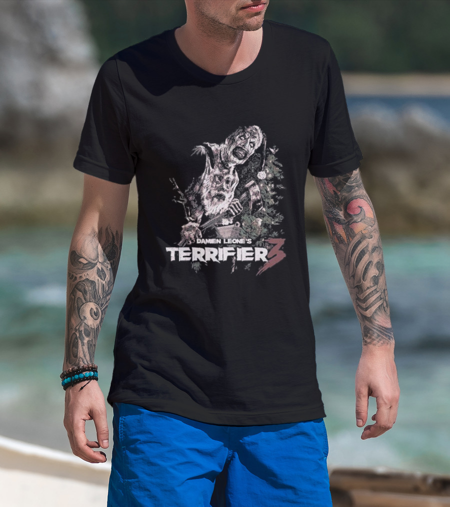 Damien Leone's Terrifier 3 Santa's Here Horror Christmas T-Shirt