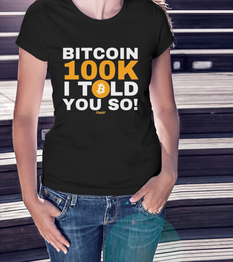 How much will this Fomo21 Bitcoin 100K I Told You So shirt shrink?