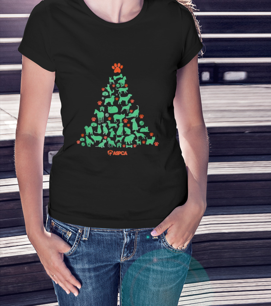 ASPCA Christmas Tree Made Of Animal Silhouettes And Paw Prints T-Shirt