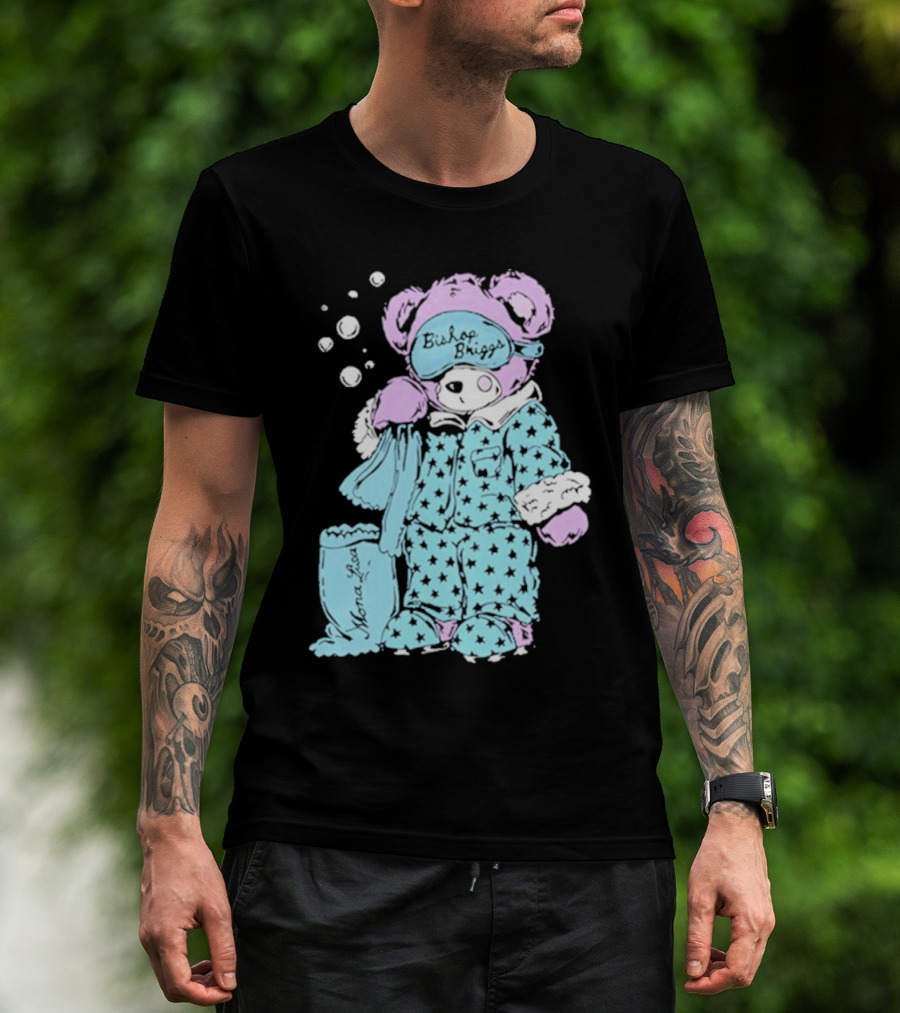 The Bishop Briggs Pajamas Bear Nana Loves Sleepwalker T-shirt is designed for everyday wear and a consistent fit. Fabric is pre-shrunk ring-spun cotton with durable stitching. See the size chart below for exact measurements.