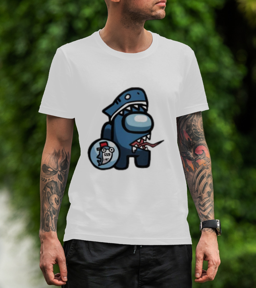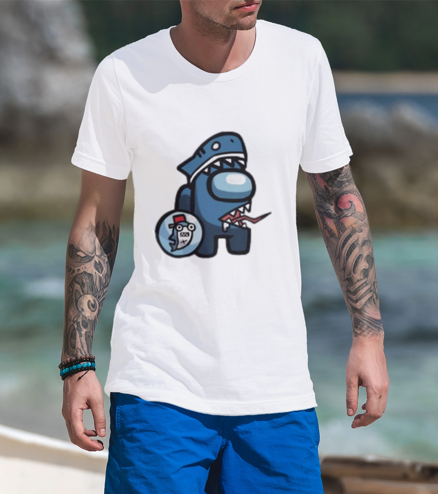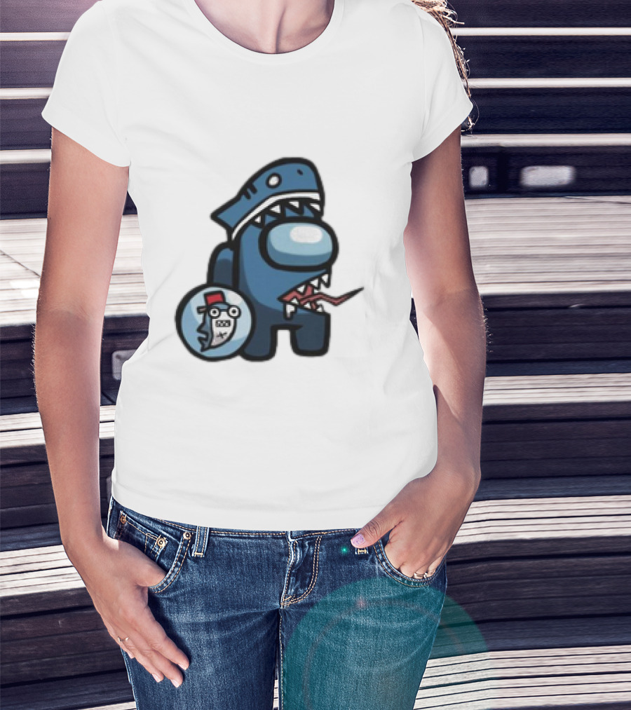 Gawr Gura Peeker Shark Hat Cute Shrimp Among Us Hololive Crossover T-Shirt