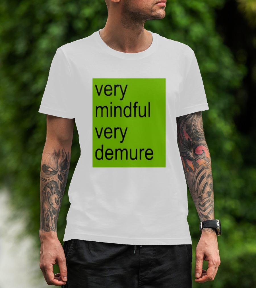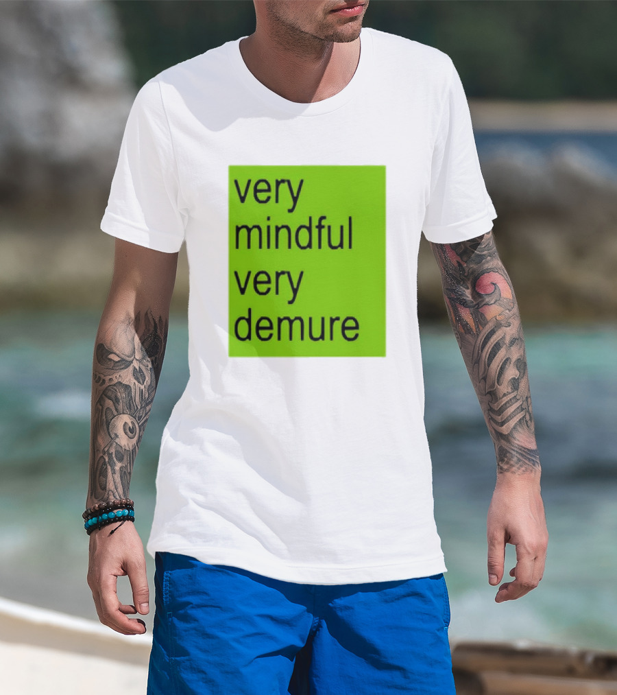 Very Mindful Very Demure Brat Statement Text Green Background T-Shirt