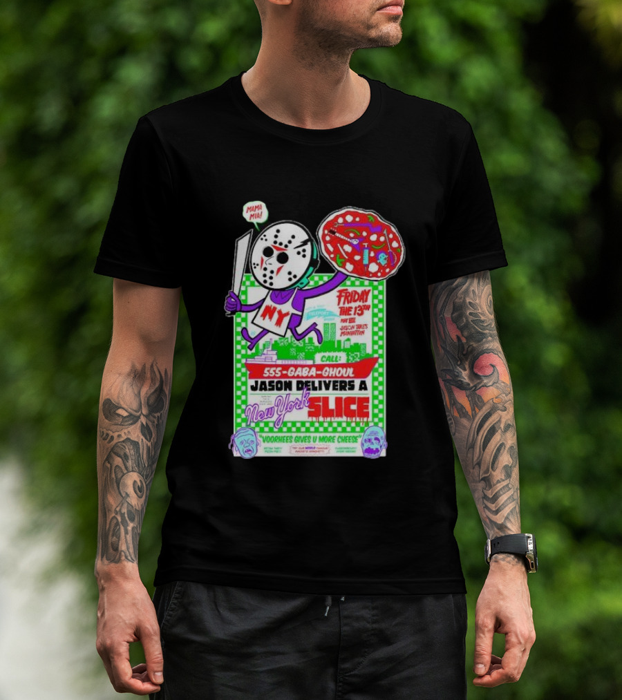 Friday The 13th Jason Delivers New York Slice Mamma Mia Horror Pizza Manhattan T-Shirt