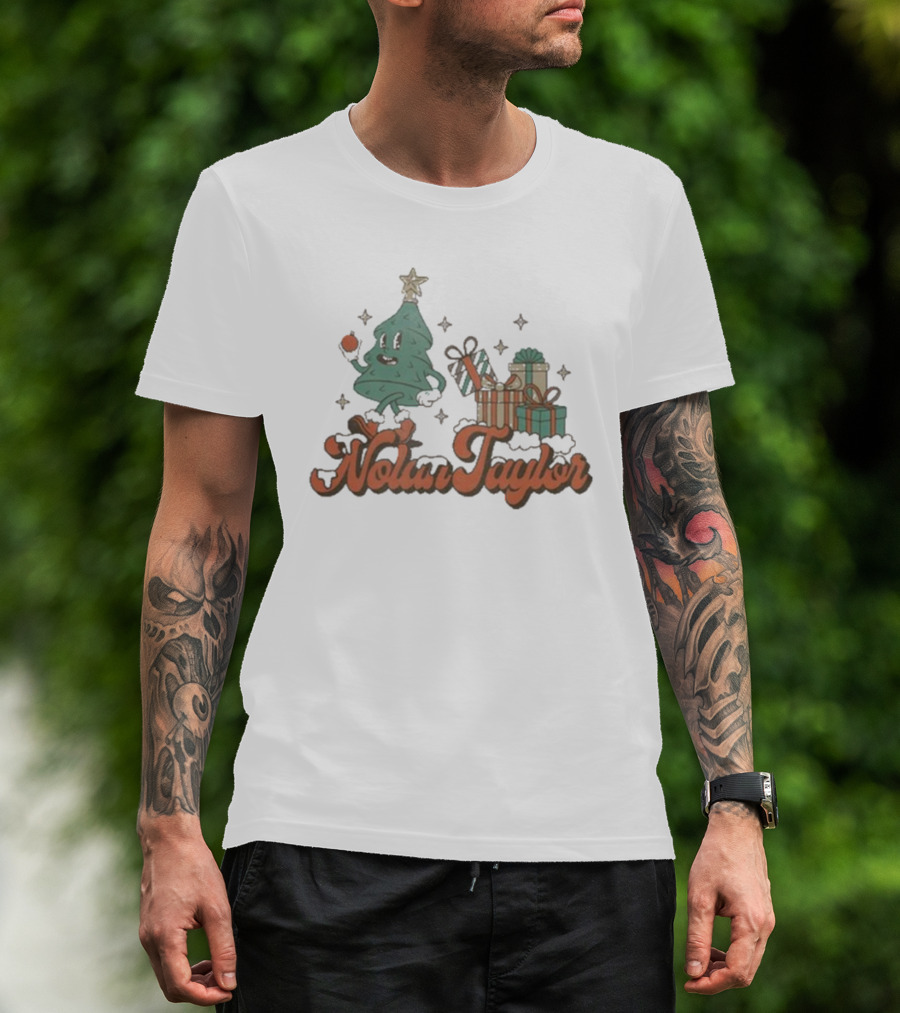 Nolan Taylor Festive Christmas Tree With Gifts And Snowy Stars T-Shirt