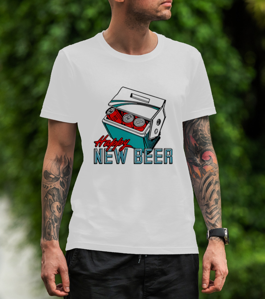 The Happy New Beer Cooler with Cans T-shirt is designed for everyday wear and a consistent fit. Fabric is pre-shrunk ring-spun cotton with durable stitching. See the size chart below for exact measurements.