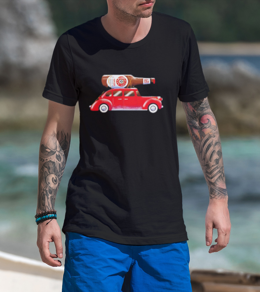 Iron City Beer Bottle On Red Vintage Car Holiday T-Shirt