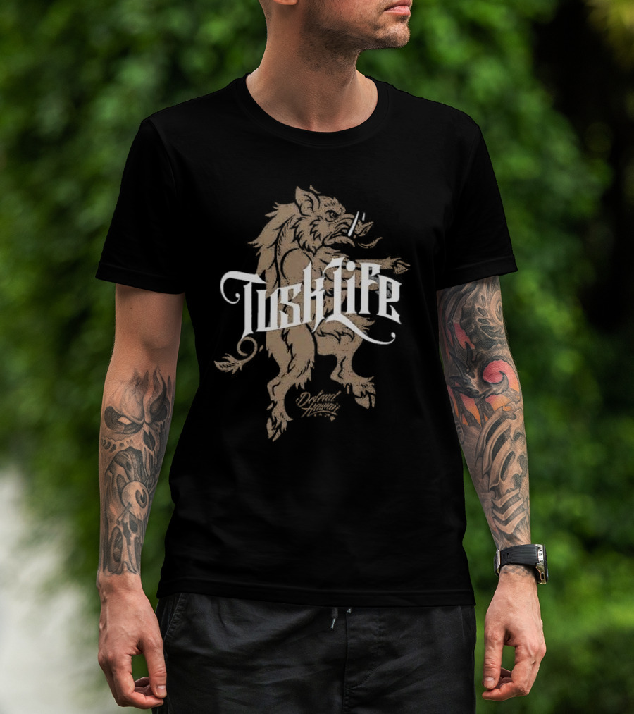 The Tusk Life Boar Defend Hawaii T-shirt is designed for everyday wear and a consistent fit. Fabric is pre-shrunk ring-spun cotton with durable stitching. See the size chart below for exact measurements.