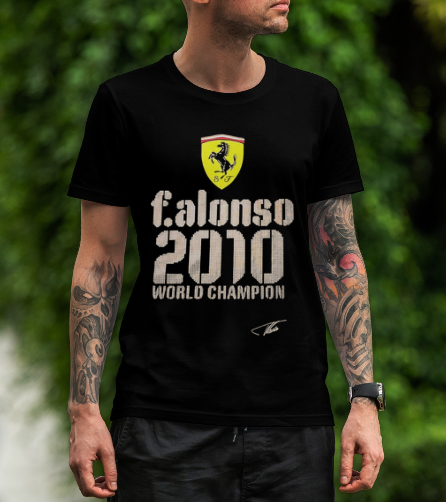 Ferrari F Alonso 2010 World Champion Vintage Logo Yellow Horse Badge T-Shirt
