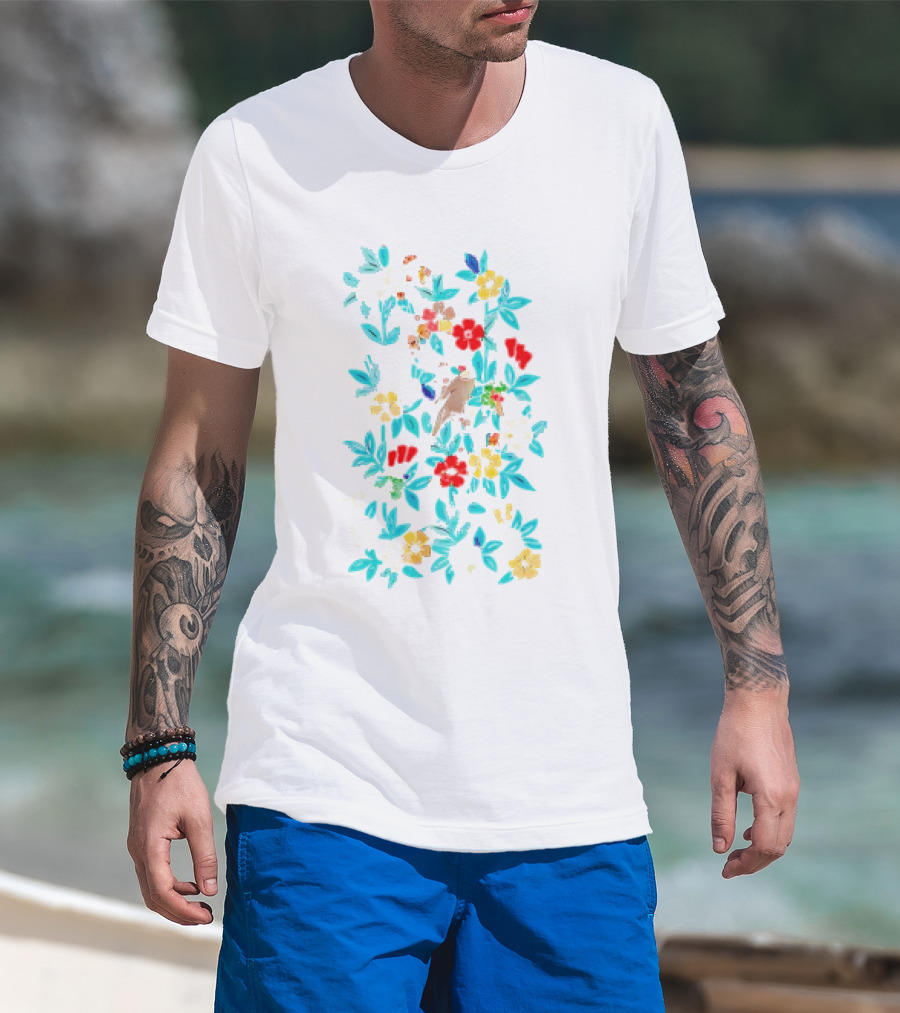 Fowl And Flower Vintage Pattern Print T-Shirt