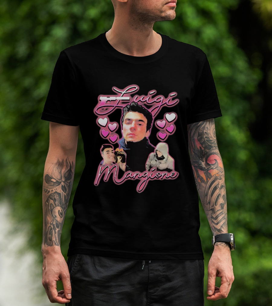 Free Luigi Mangione Heart Pink Hearts Surround T-Shirt