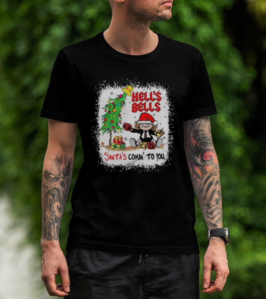 Hell’s Bells Santa’s Comin' To You Christmas Tree Presents ACDC Santa Hat T-Shirt