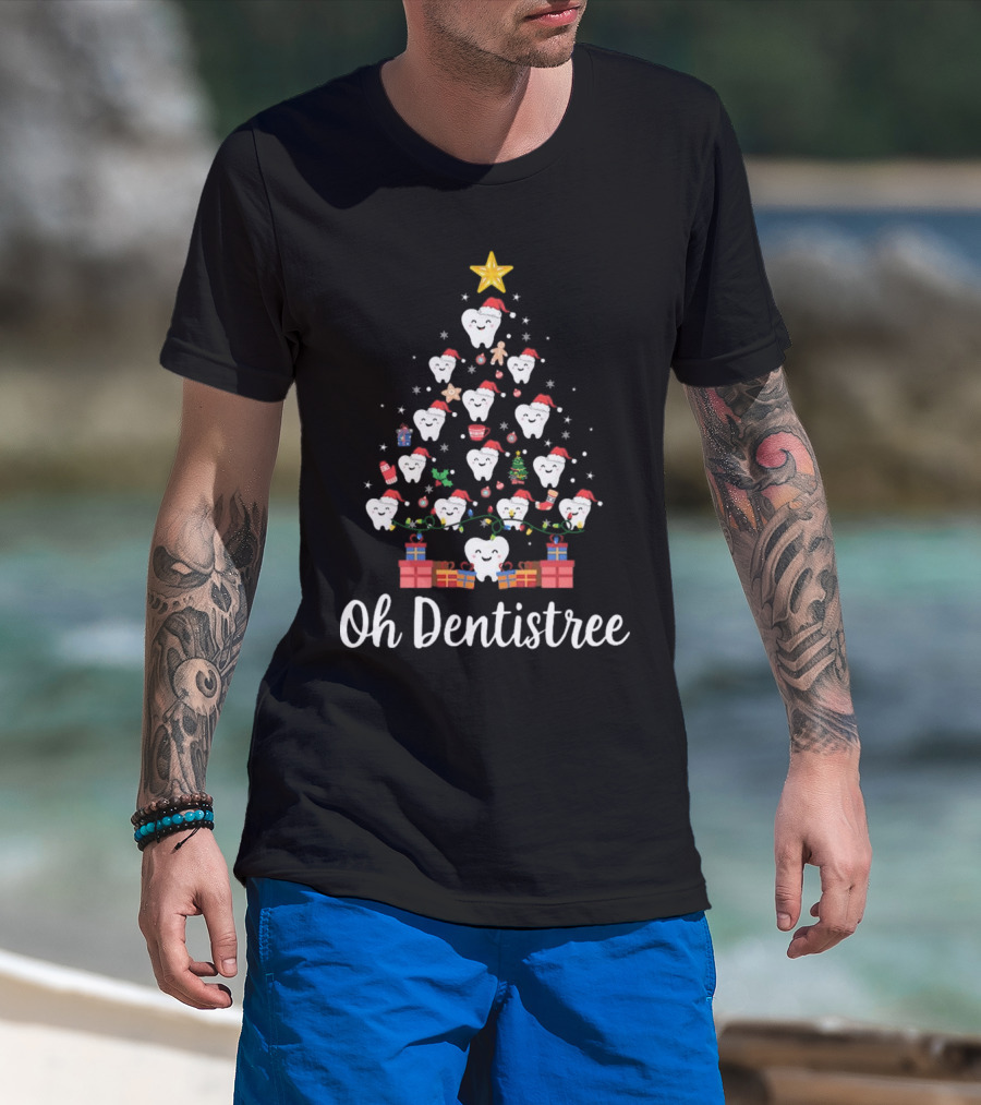 Oh Dentistree Christmas Tree With Tooth Ornaments And Gifts T-Shirt