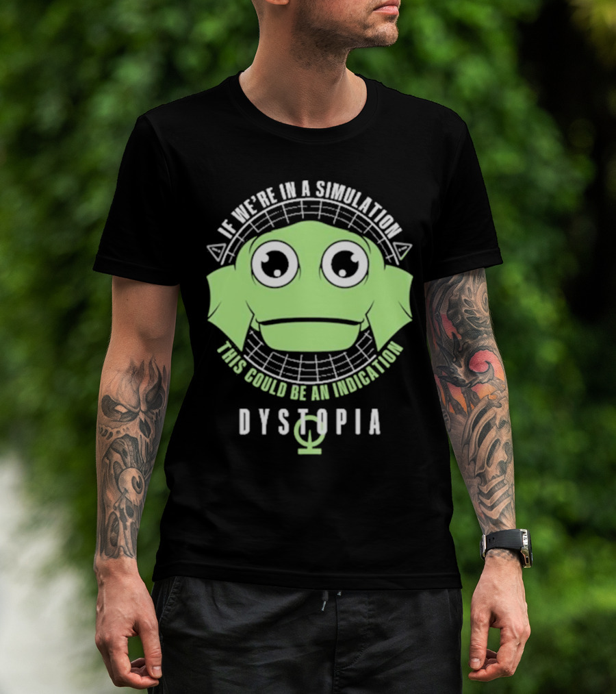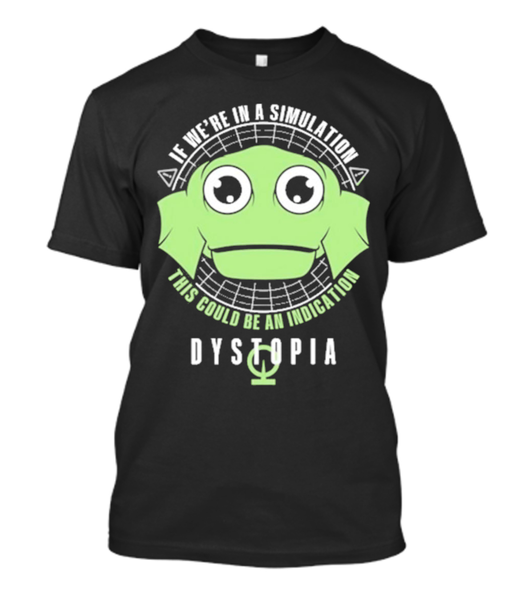 Simulation Indication Dystopia Wormstin Green Alien Face T-Shirt