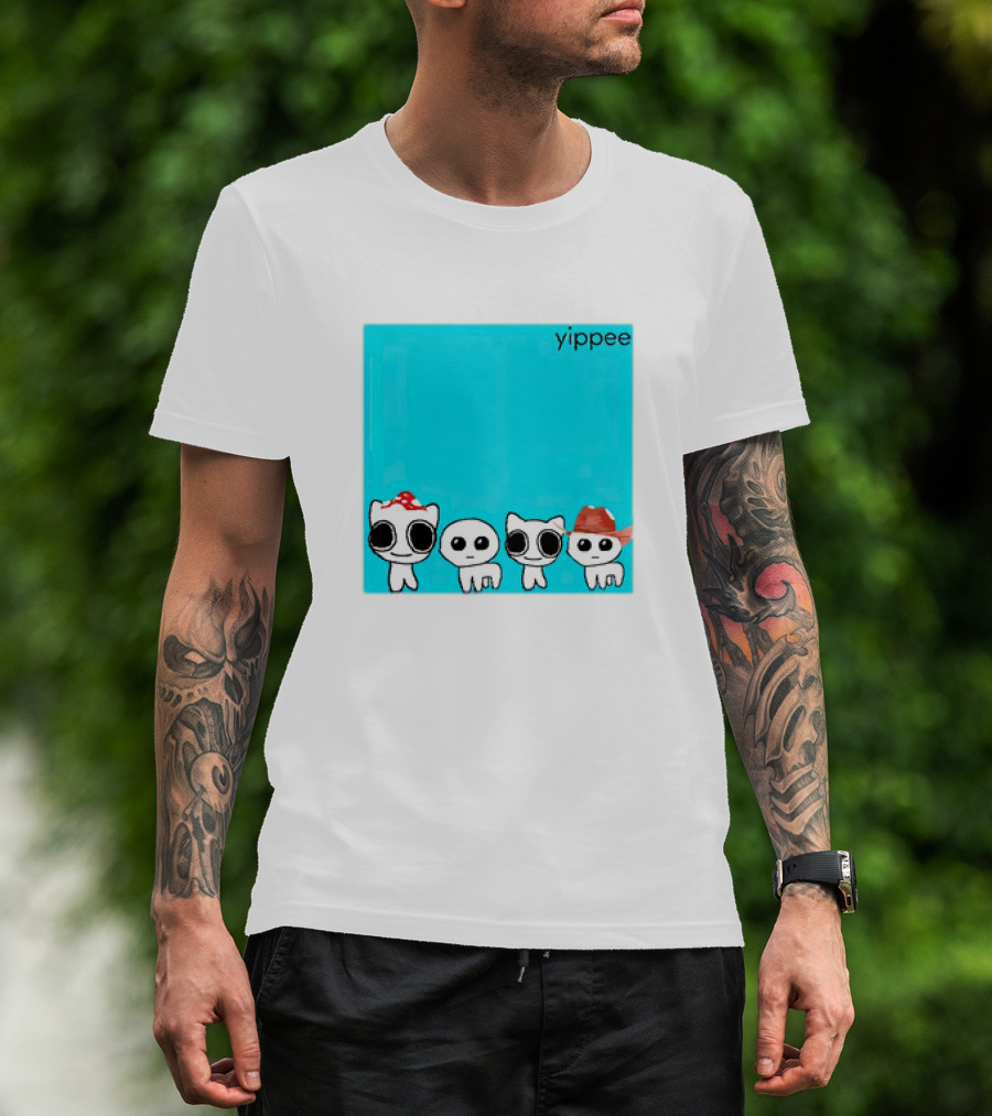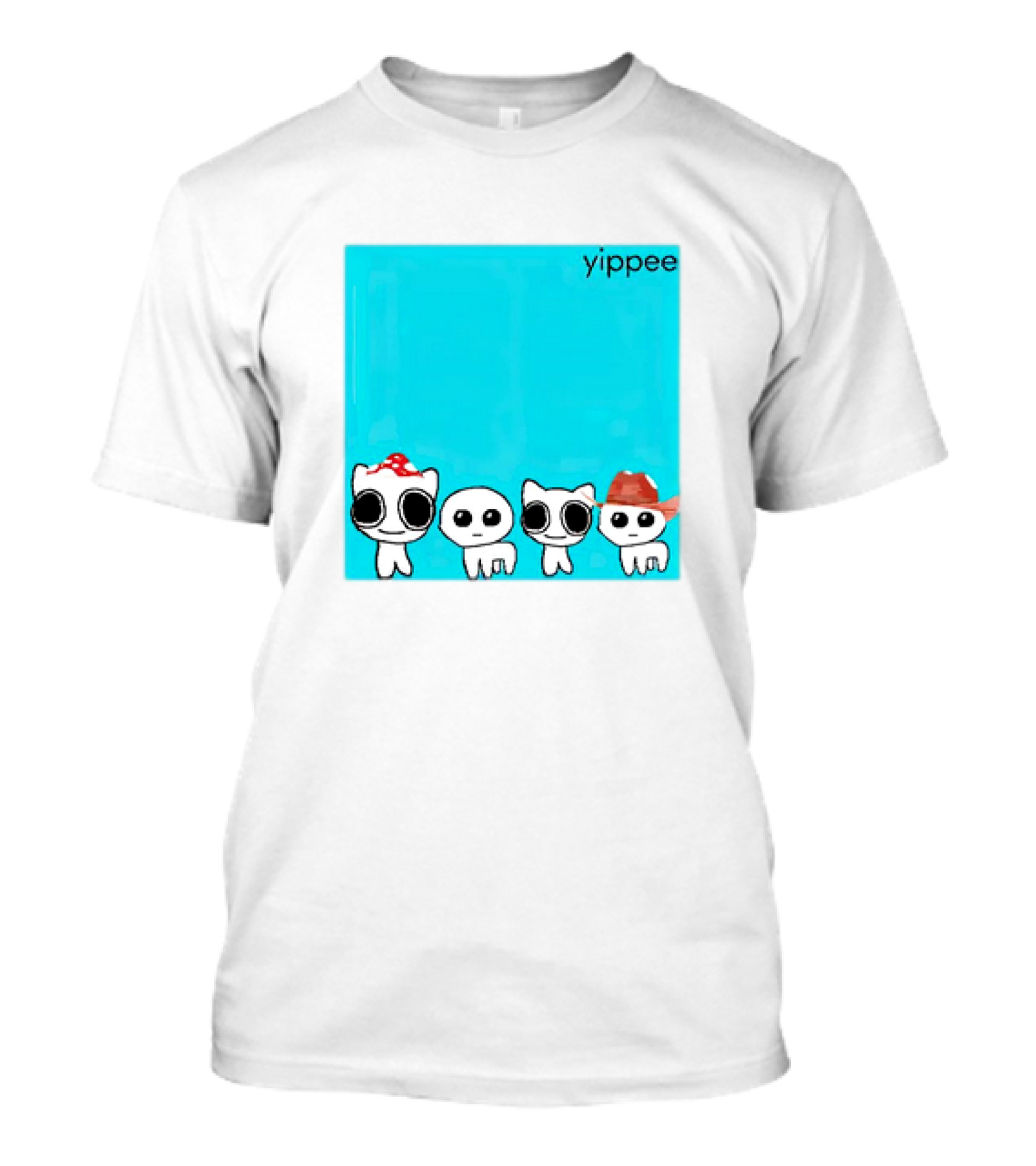 The yippee x weezer cringey characters with hats T-shirt is designed for everyday wear and a consistent fit. Fabric is pre-shrunk ring-spun cotton with durable stitching. See the size chart below for exact measurements.