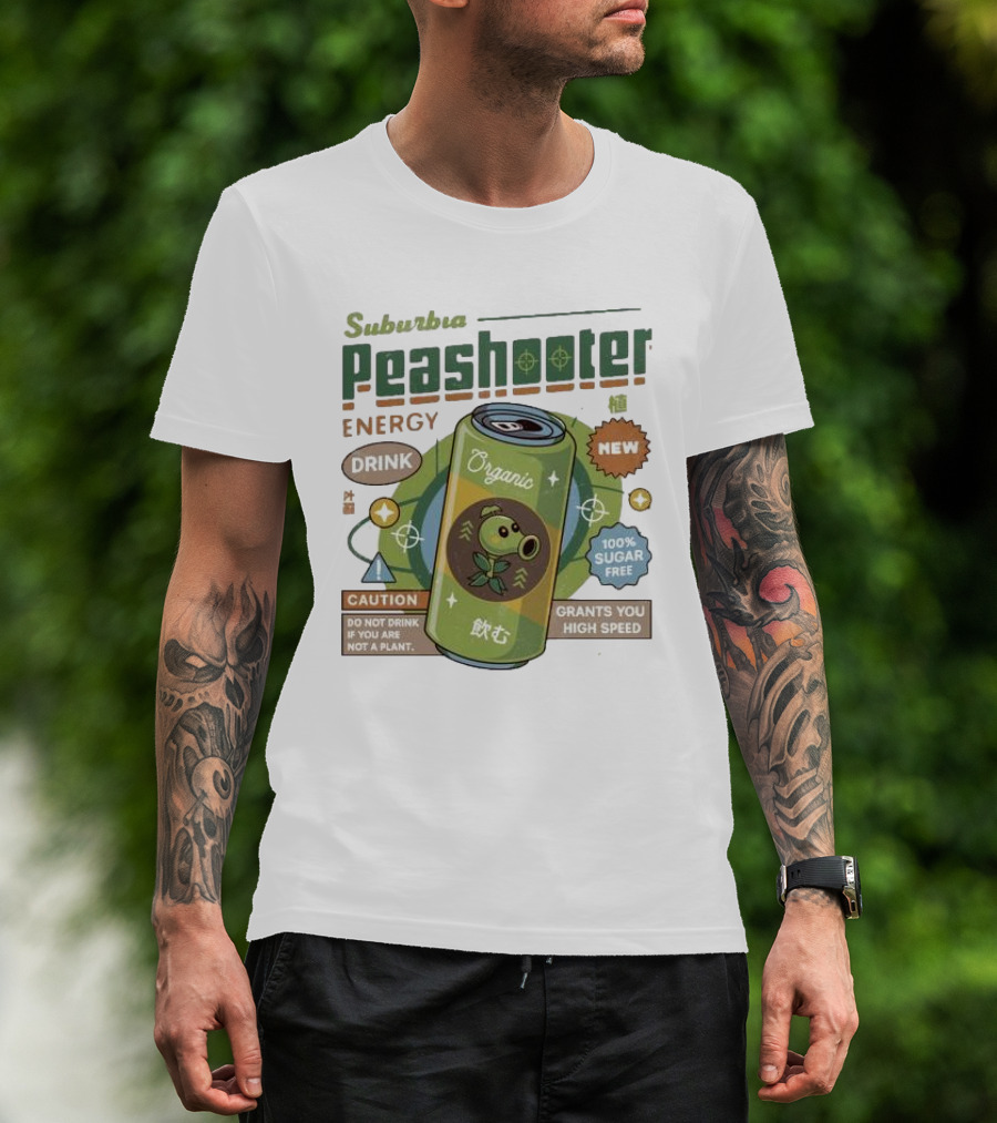 Suburbia Peashooter Energy Drink Organic New 100% Sugar Free Grants You High Speed Caution Do Not Drink If You Are Not A Plant T-Shirt
