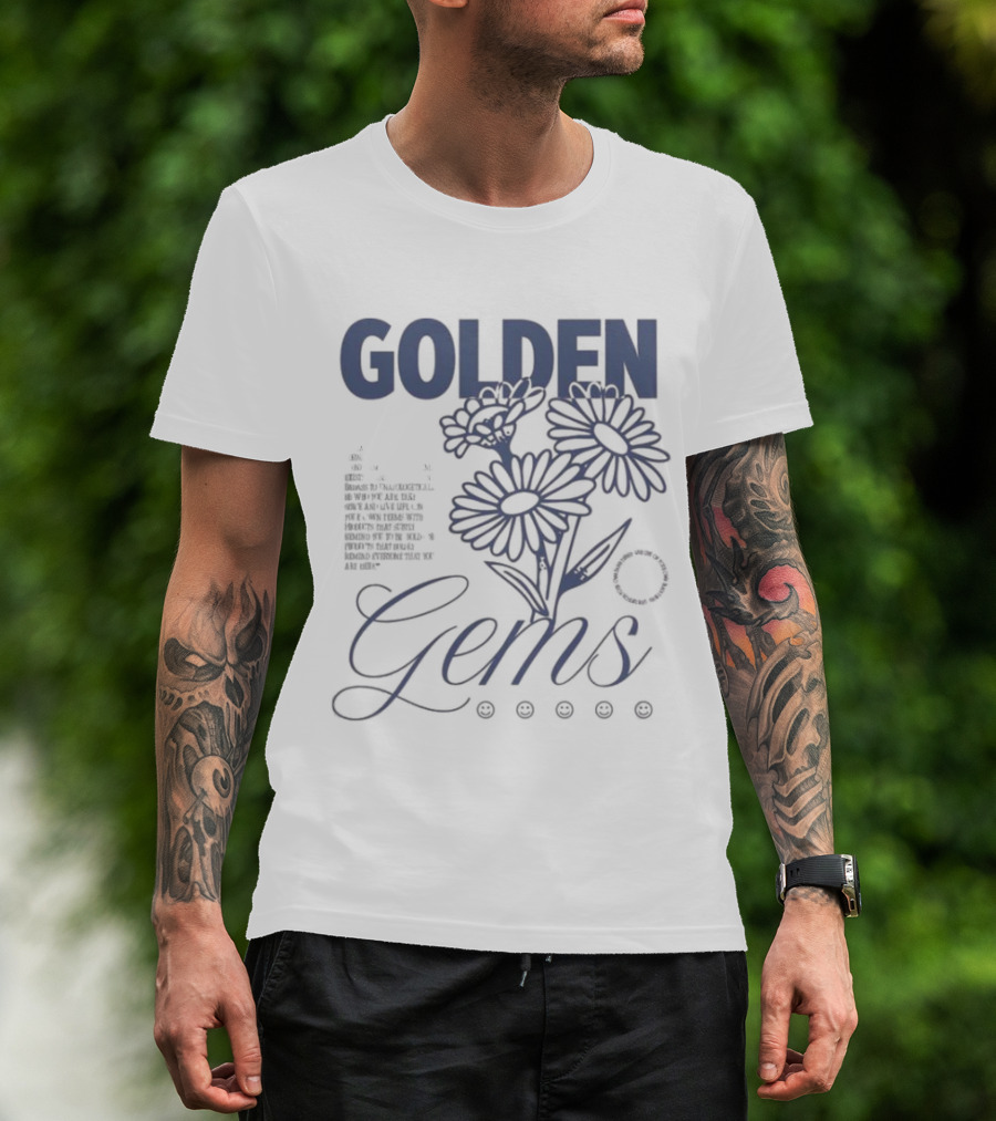 The Golden Gems Smiley Daisy Manifesto T-shirt is designed for everyday wear and a consistent fit. Fabric is pre-shrunk ring-spun cotton with durable stitching. See the size chart below for exact measurements.