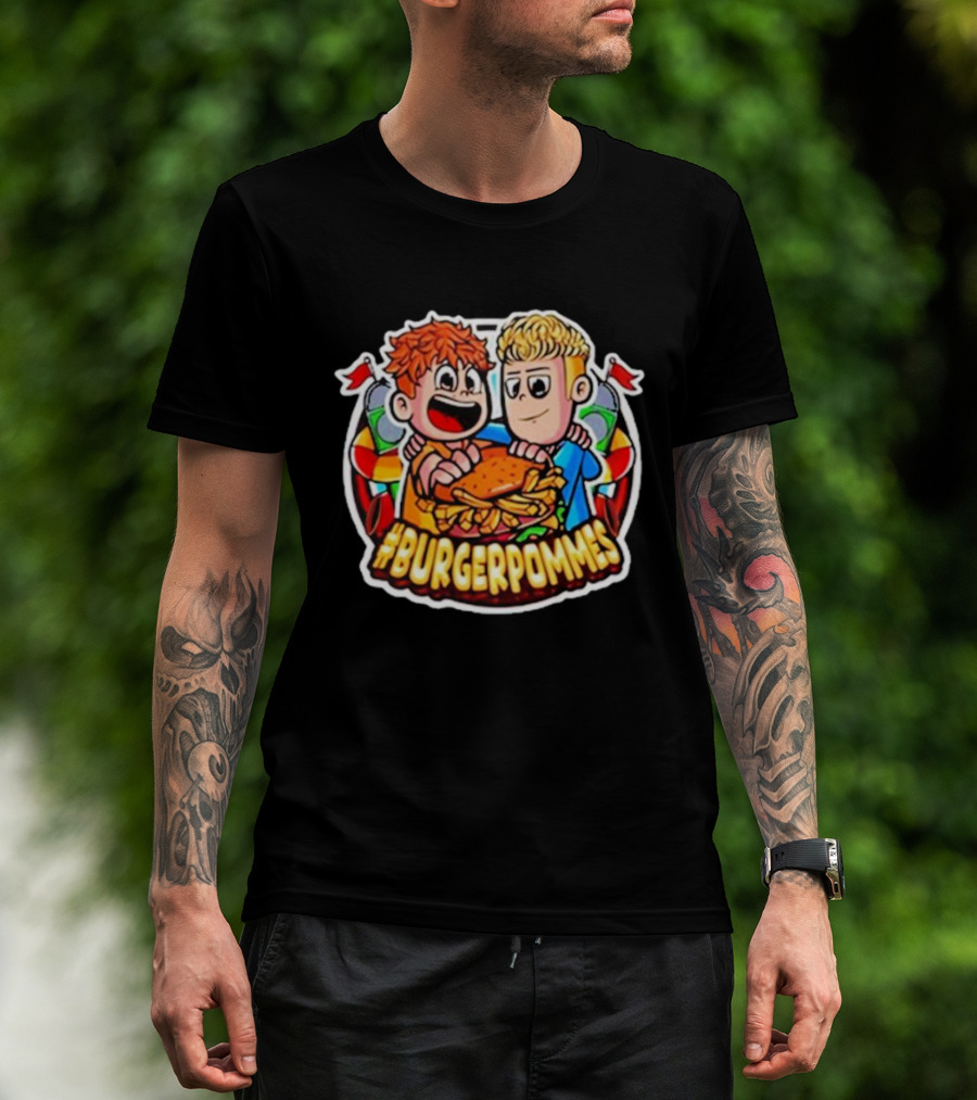 Burgerpommes Lukas Duo Eating Burger And Fries T-Shirt