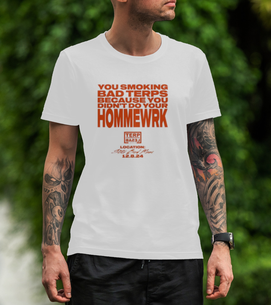 YOU SMOKING BAD TERPS BECAUSE YOU DIDN’T DO YOUR HOMMEWRK TERP BARZ LOCATION 12.8.24 T-Shirt