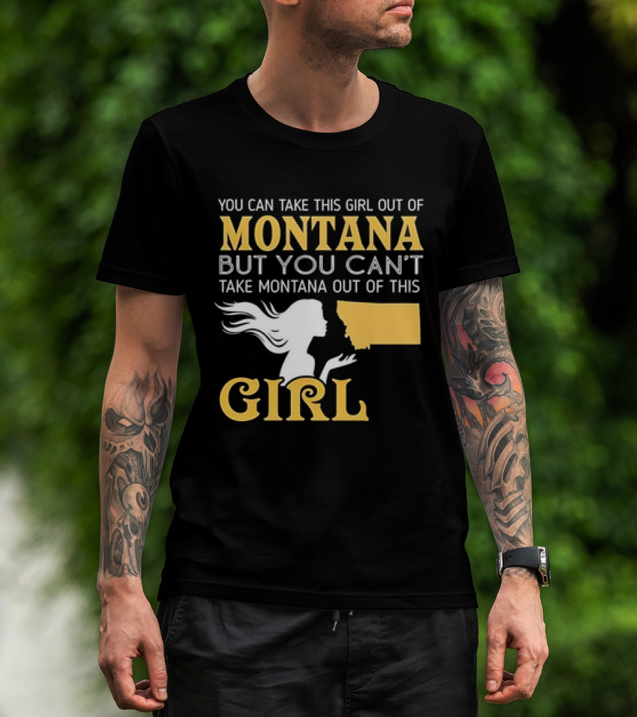 You Can Take This Girl Out Of Montana But You Can’t Take Montana Out Of This Girl With Silhouette And State Map T-Shirt