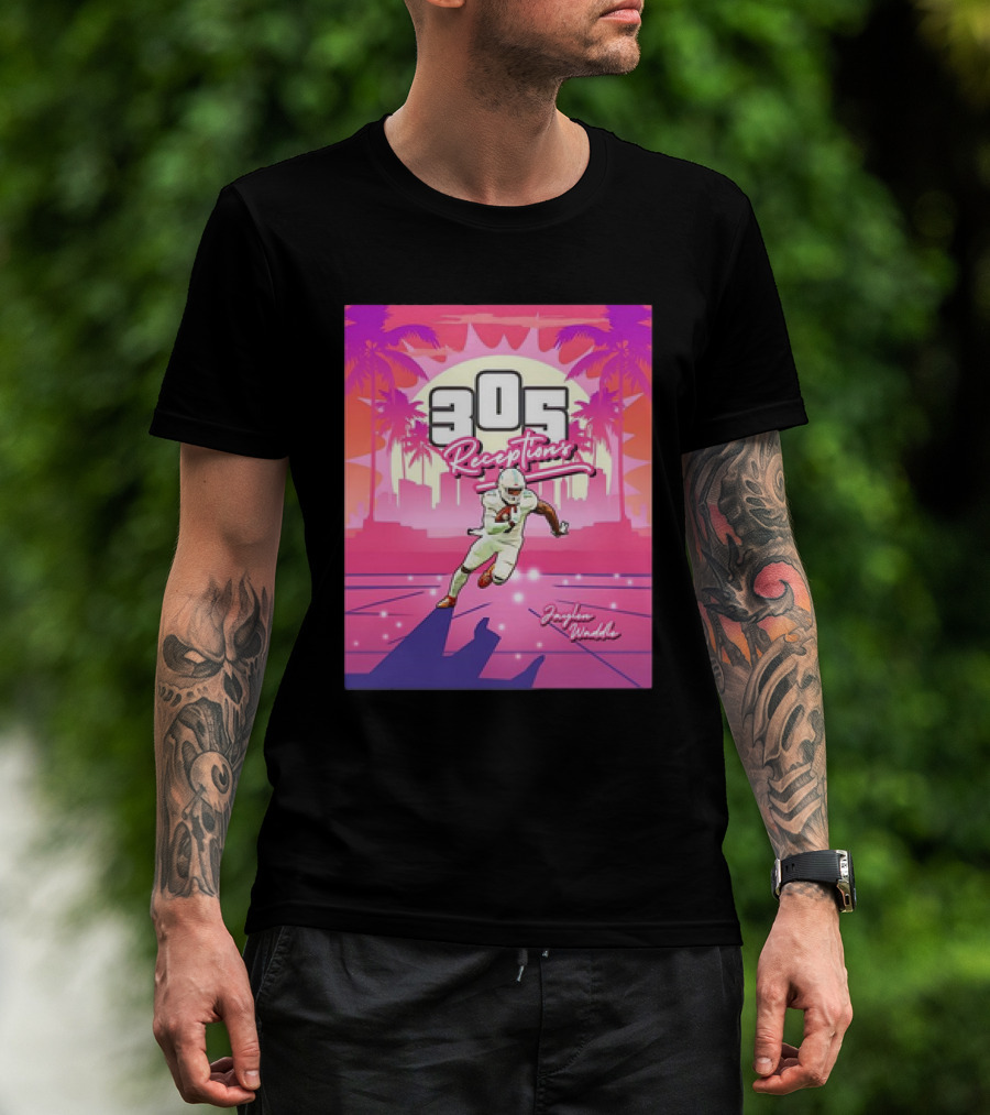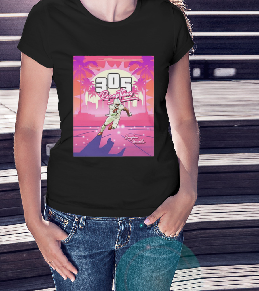Jaylen Waddle 305 Receptions Miami Dolphins Tropical Sunset Scene T-Shirt