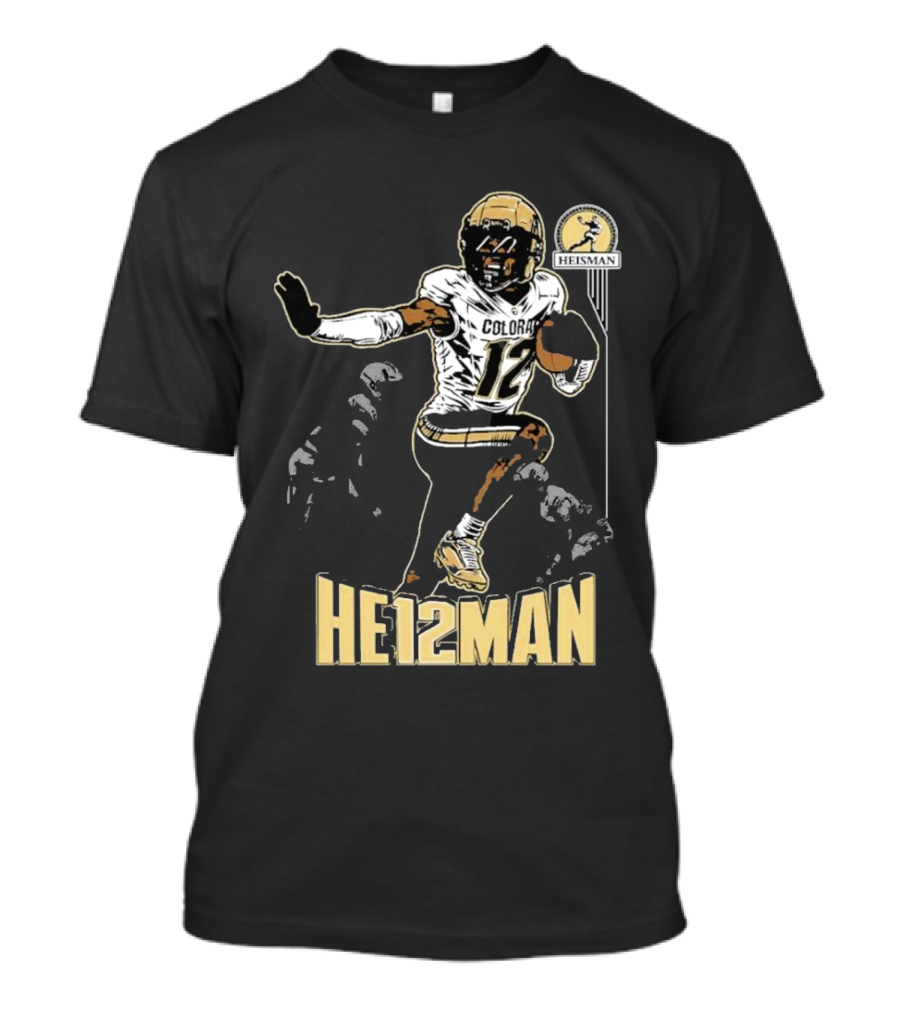 The Travis Hunter He12man Colorado Football Heisman Trophy T-shirt is designed for everyday wear and a consistent fit. Fabric is pre-shrunk ring-spun cotton with durable stitching. See the size chart below for exact measurements.