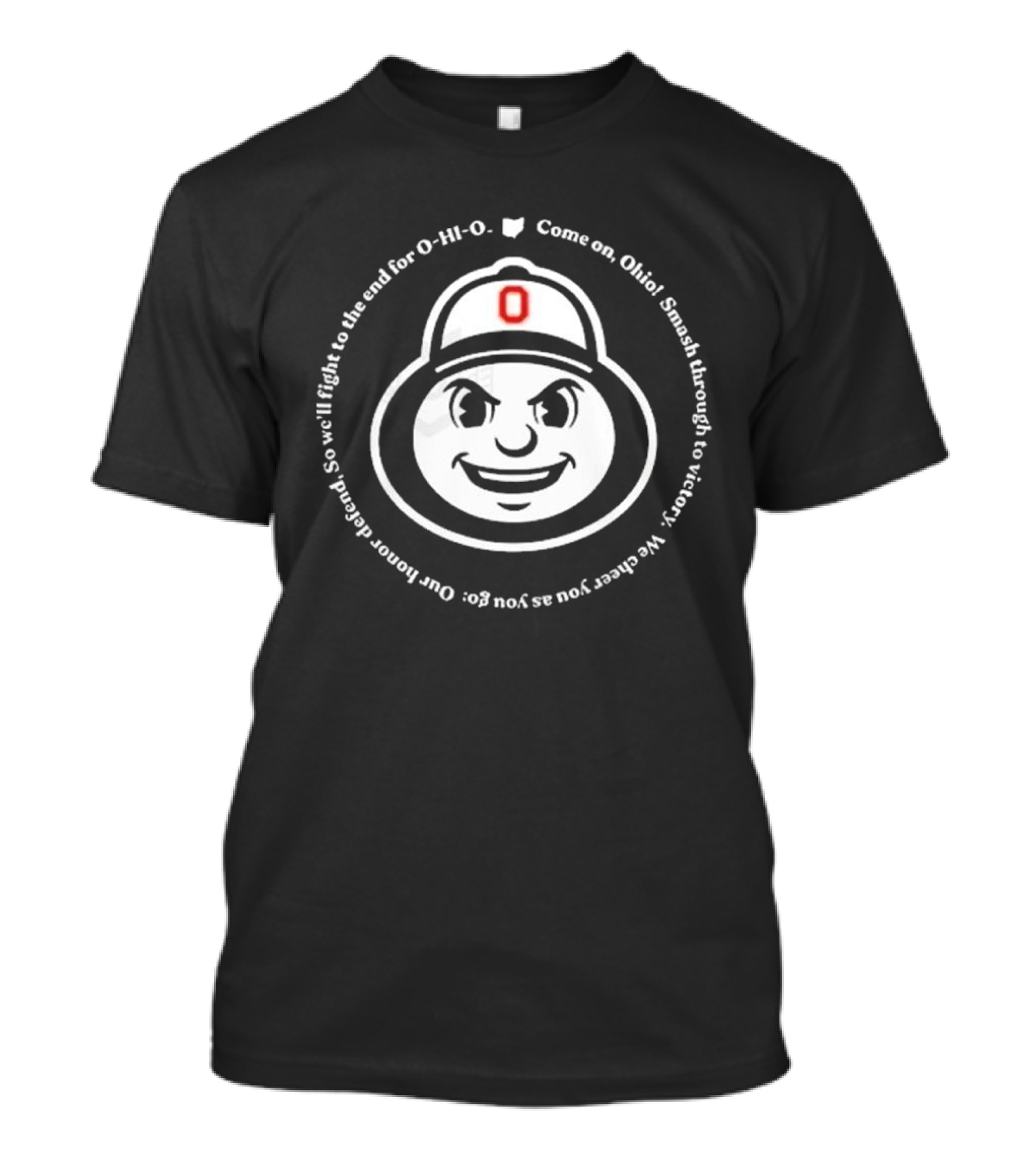 The Ohio State Buckeyes Smash Through to Victory O-HI-O T-shirt is designed for everyday wear and a consistent fit. Fabric is pre-shrunk ring-spun cotton with durable stitching. See the size chart below for exact measurements.