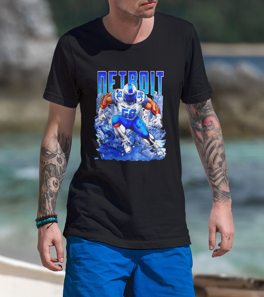 The Detroit Lions Penei Sewell 58 Cartoon Superhero Action T-shirt is designed for everyday wear and a consistent fit. Fabric is pre-shrunk ring-spun cotton with durable stitching. See the size chart below for exact measurements.