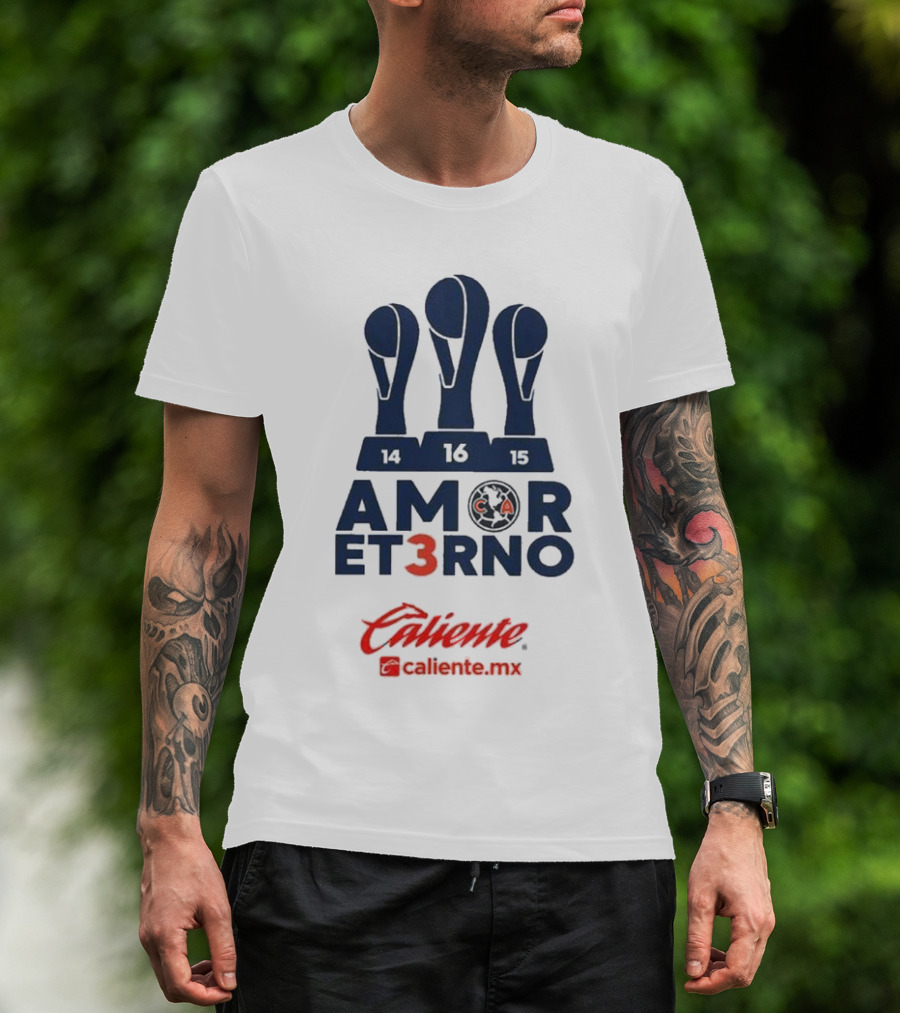 Club America Amor Eterno 3 Caliente.mx Tricampeon Del Futbol Mexicano 14 16 15 T-Shirt