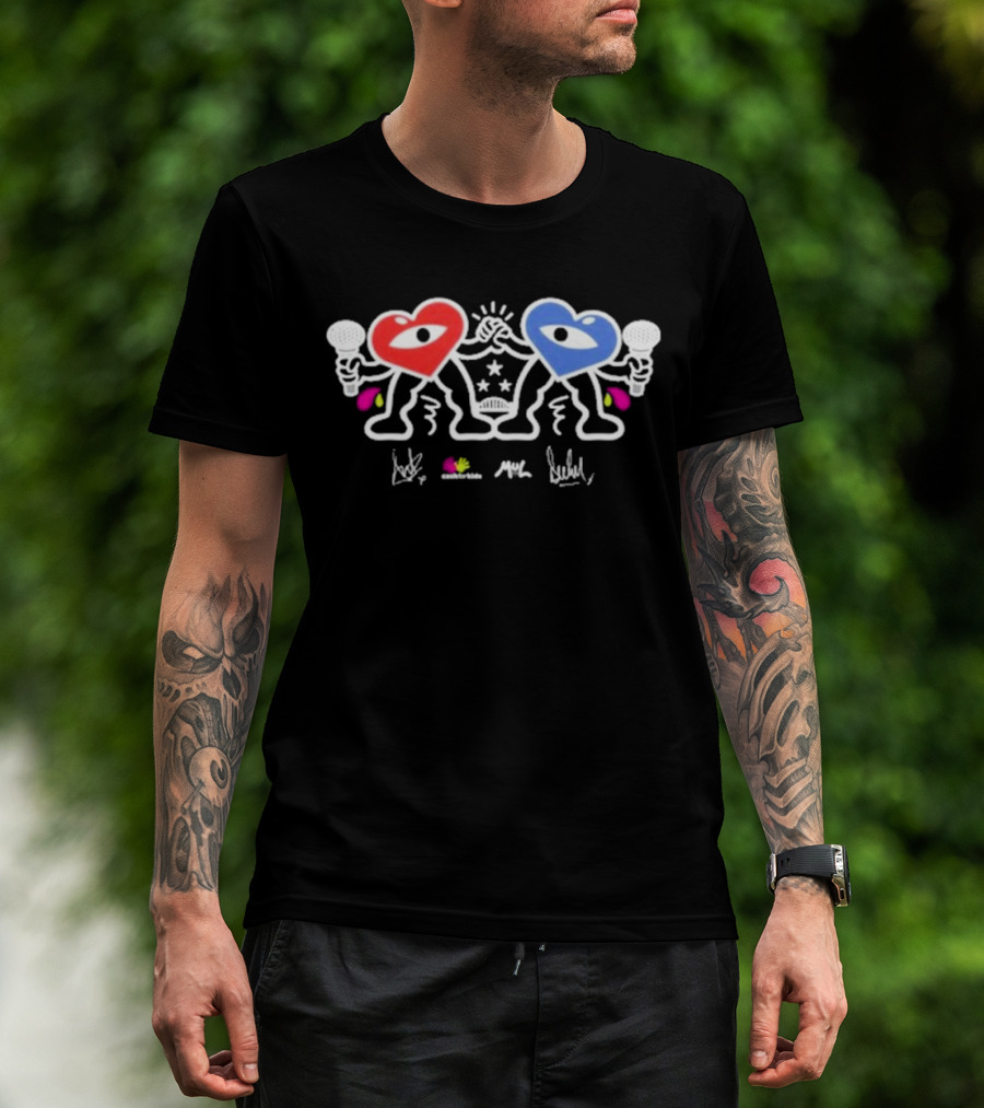 Ant And Dec Cash For Kids X Mul Iconic Heart Characters Fist Bump With Microphones T-Shirt