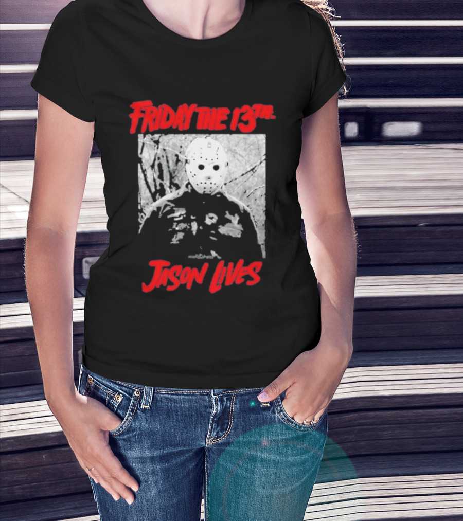 Friday The 13Th Jason Lives Masked Horror Icon Forest Scene T-Shirt