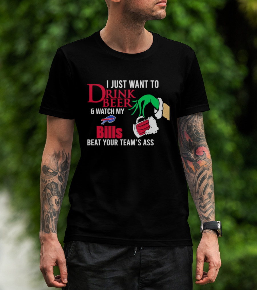 Grinch I Just Want To Drink Beer And Watch My Bills Beat Your Team's Ass T-Shirt