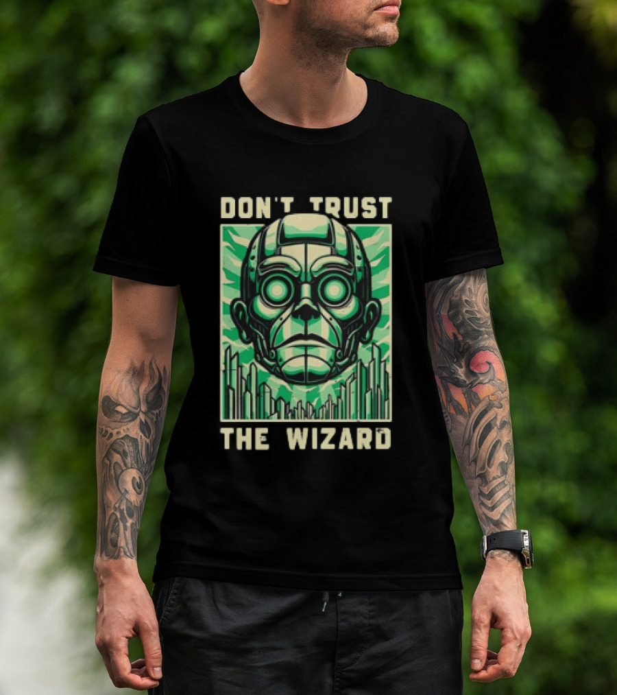 Don't Trust The Wizard Futuristic Metallic Face With Green Shards T-Shirt