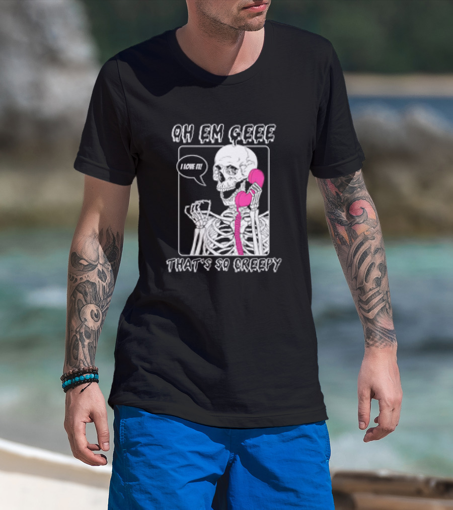 OH EM GEEE Skeleton I Love It That's So Creepy Pink Phone T-Shirt