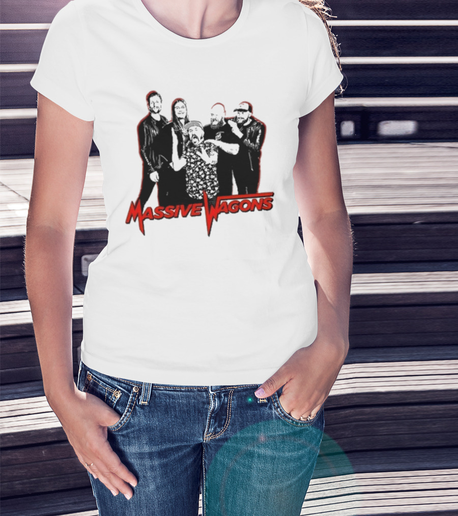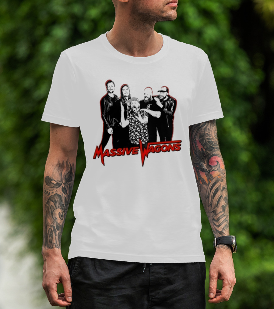 The Massive Wagons Band Graphic Red and Black T-shirt is designed for everyday wear and a consistent fit. Fabric is pre-shrunk ring-spun cotton with durable stitching. See the size chart below for exact measurements.